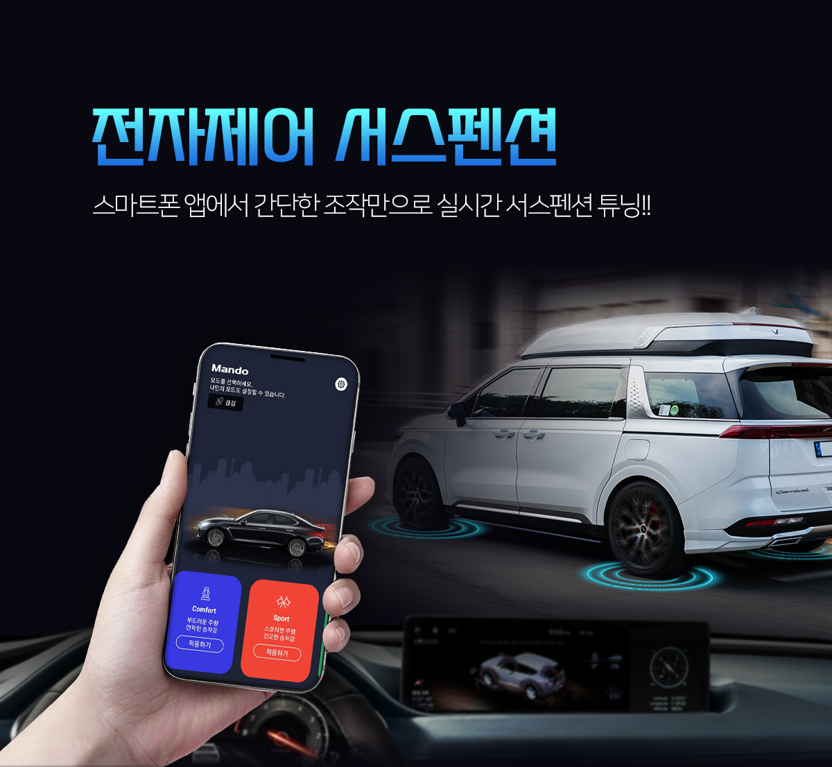 만도 전자제어 서스펜션 + 업스프링(스톰 3센치 캠핑카용)
